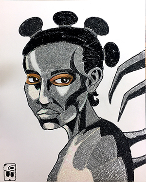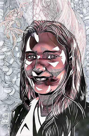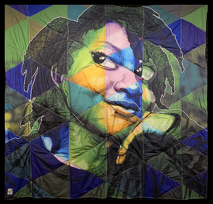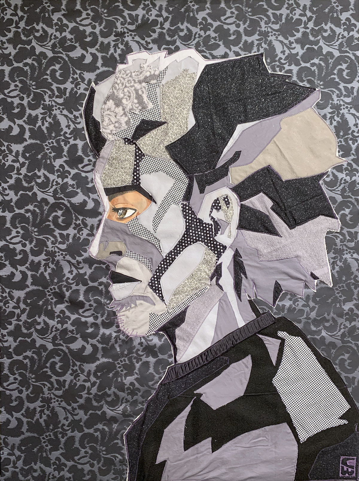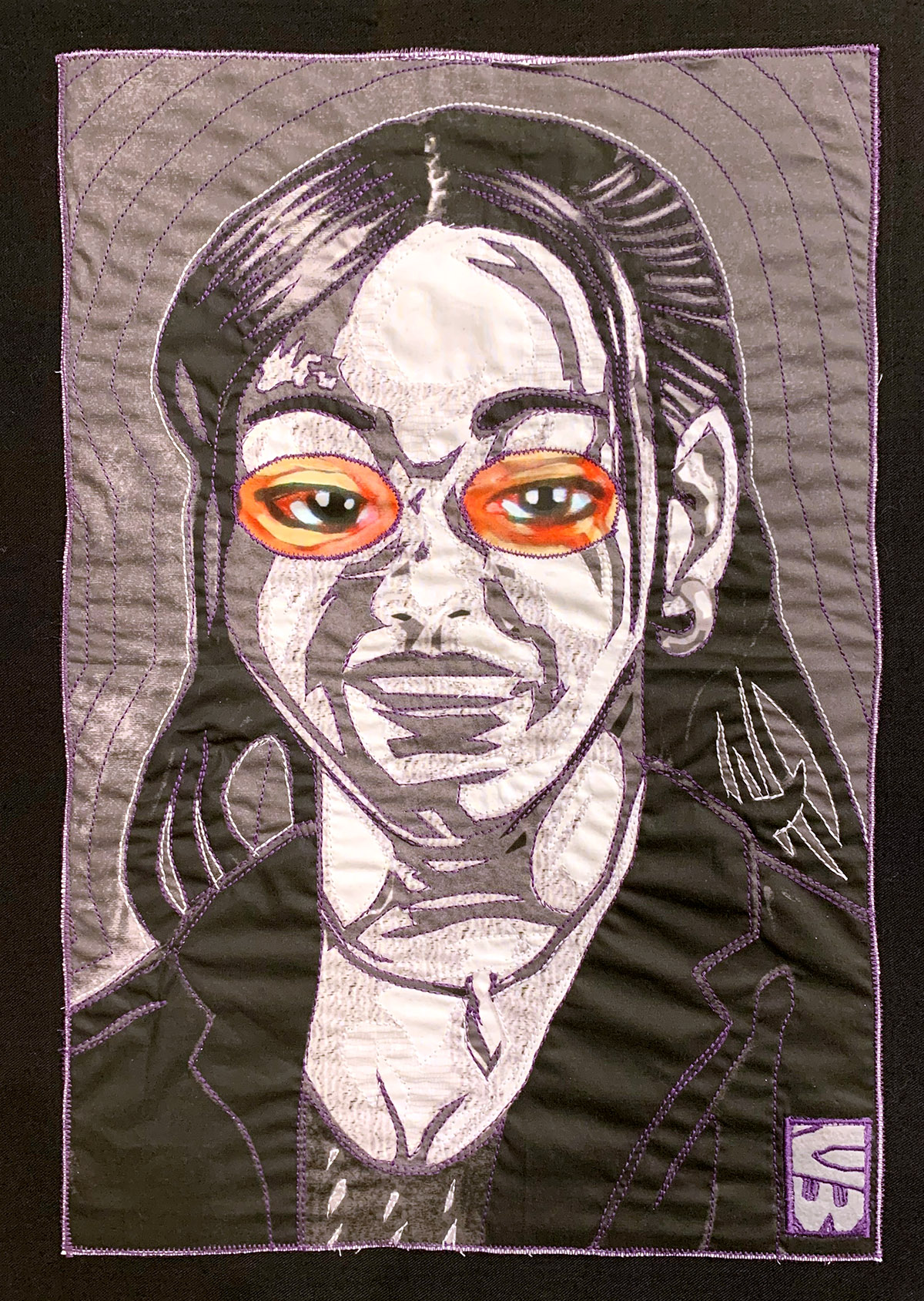 ![]() "Wanda" - Bleach and Stitch Portrait |