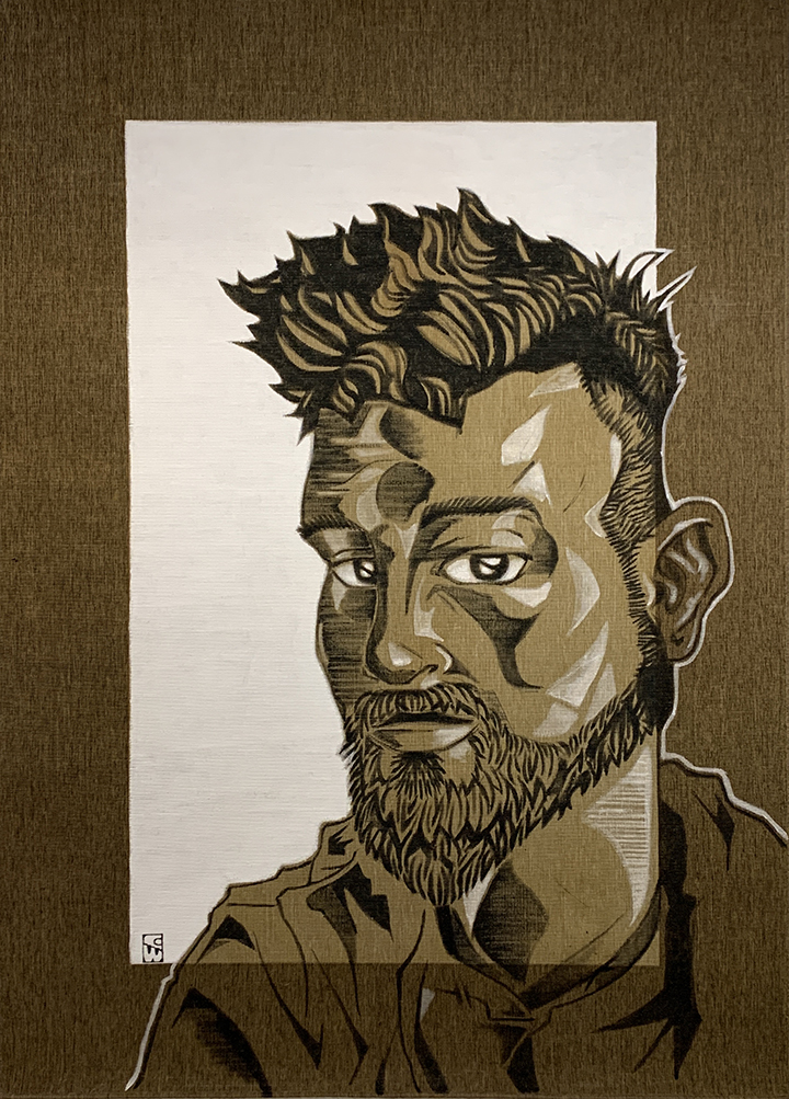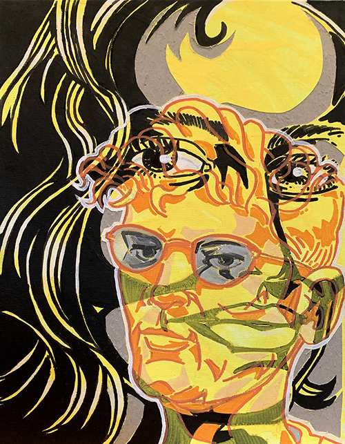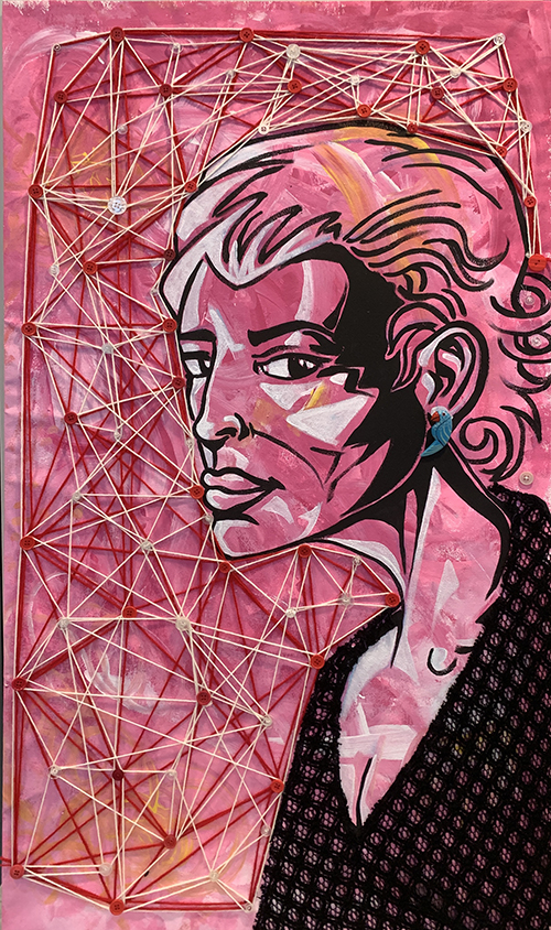 ![]() "Juliet" - Acrylic and Hand Stitched Yarn over Recycled Painting |