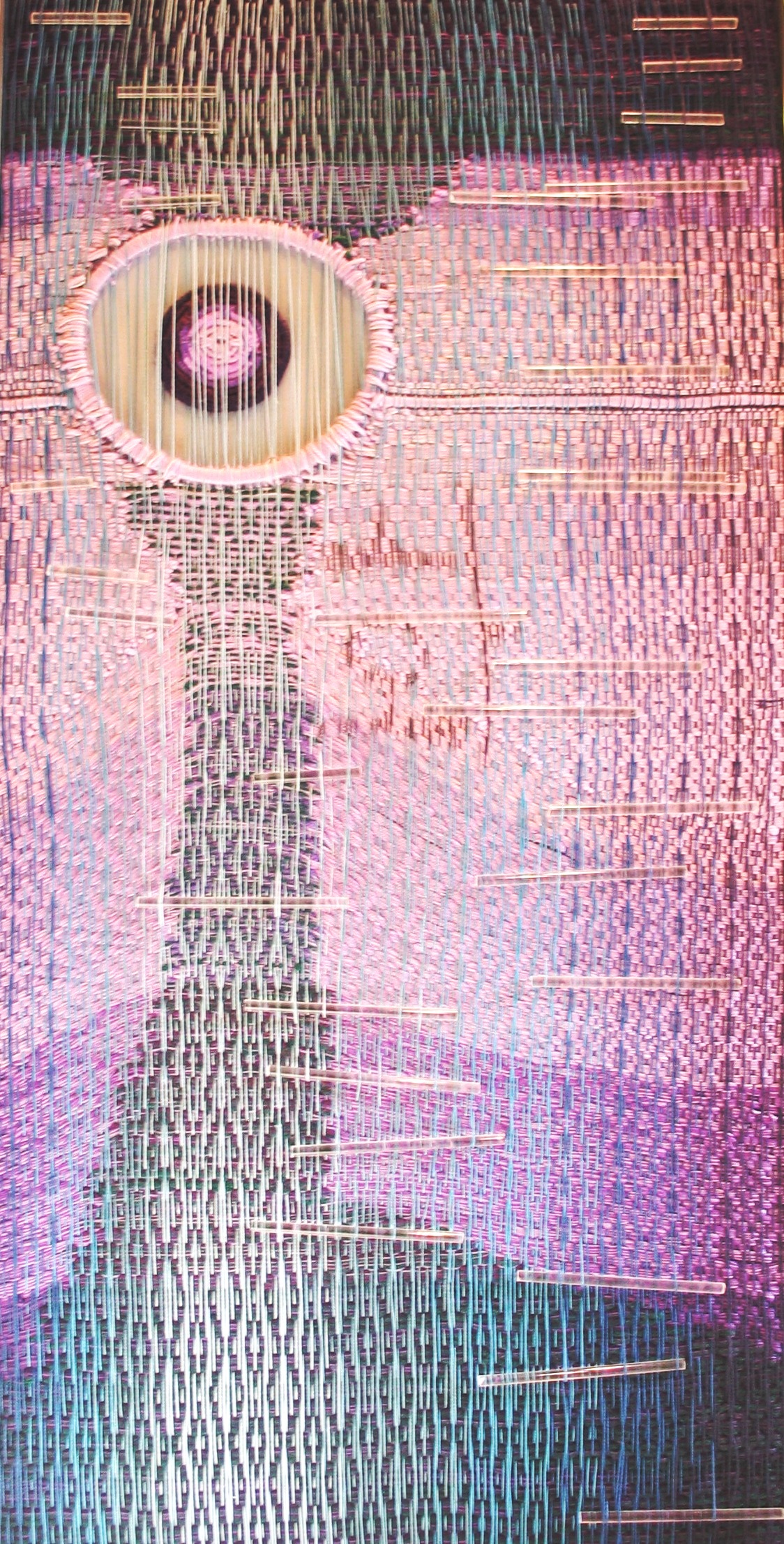 ![]() "Shower Glass" - Yarn on Pegboard behind glass |