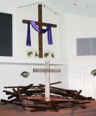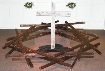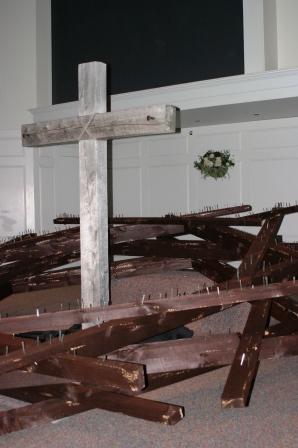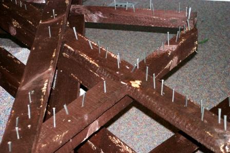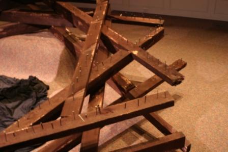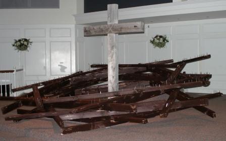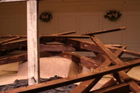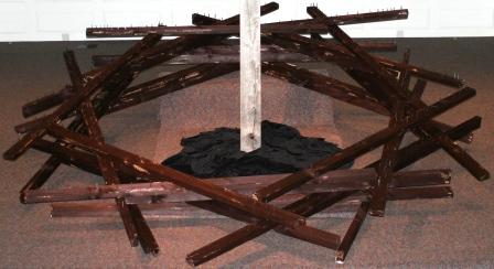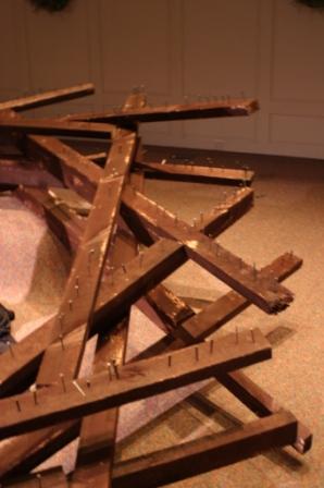 This performance was done on April, 6, 2007 in Hopkinton, MA. The crown was constructed of 36, 8foot pine 2x4's.The crown measured 8.5 feet (center diameter) and over 10 feet outer diameter. During the sermon the congregation took turns coming on stage and hammering a nail into the crown. The noise and act of hammering were the final elements to this work.