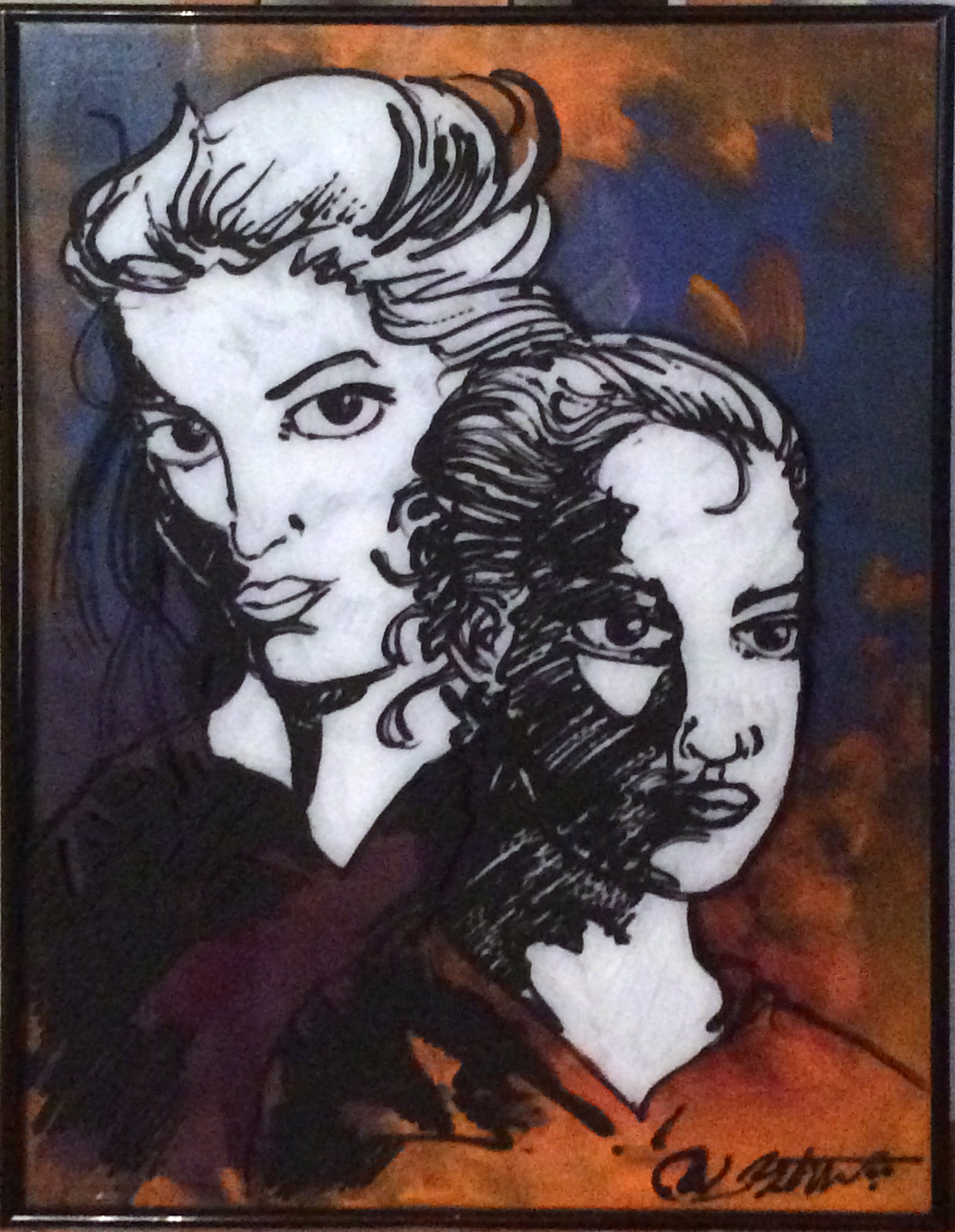 "Sisters" - Acrylic on Glass